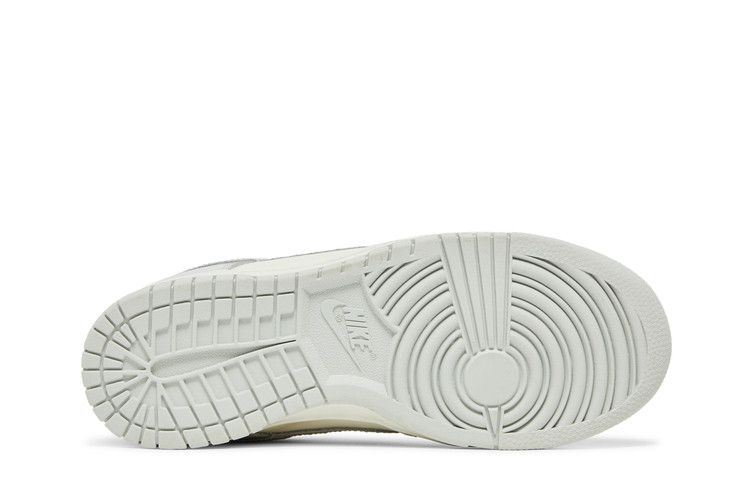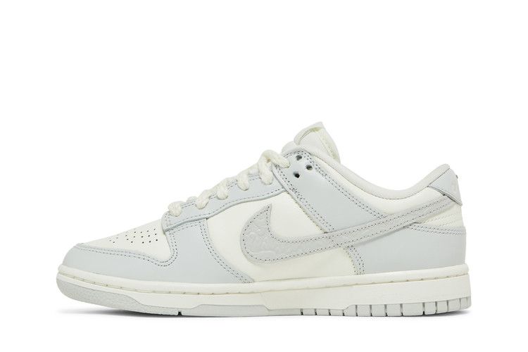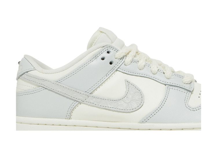 The Nike Dunk Low Needlework Sail Aura (W) features a sail and neutral grey color palette. The leather upper includes ship-seated overlays with multi-row stitching for durability. A lacing system...