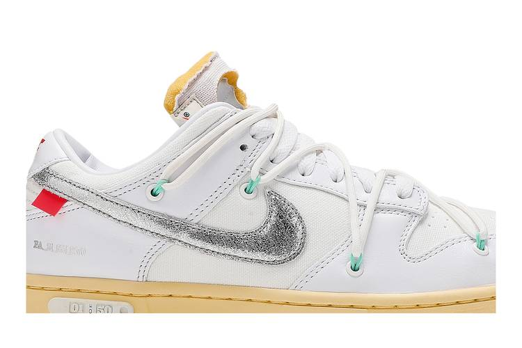 The Nike Dunk Low Off-White Lot 1 is a limited edition sneaker from the ‘Dear Summer’ collection, featuring a white canvas and leather upper with metallic silver Swoosh detailing. The...