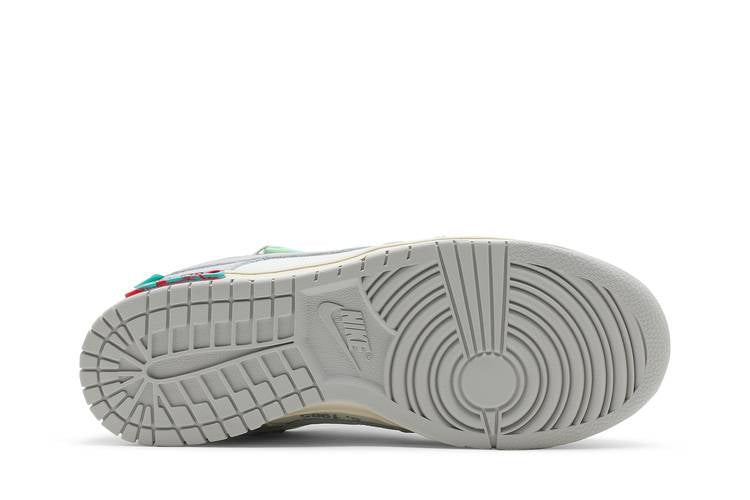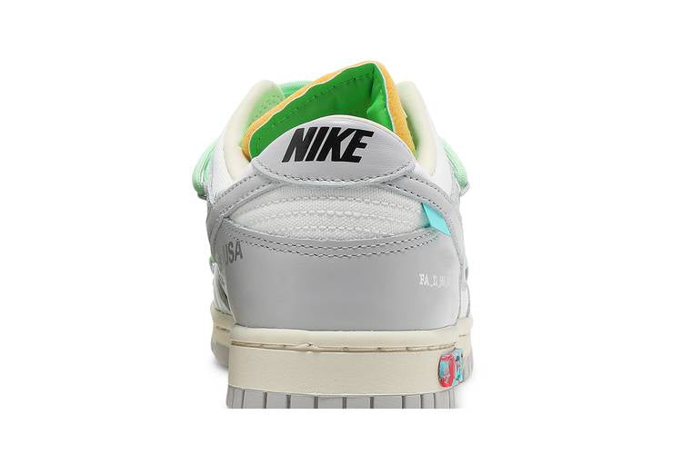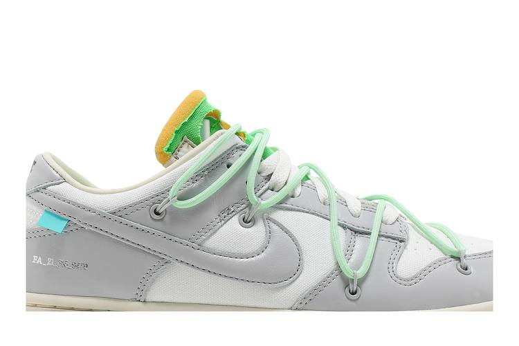 The Nike Dunk Low Off-White Lot 7 is part of the ‘Dear Summer’ collection by Virgil Abloh, featuring a white leather upper with grey canvas overlays and signature Off-White design...