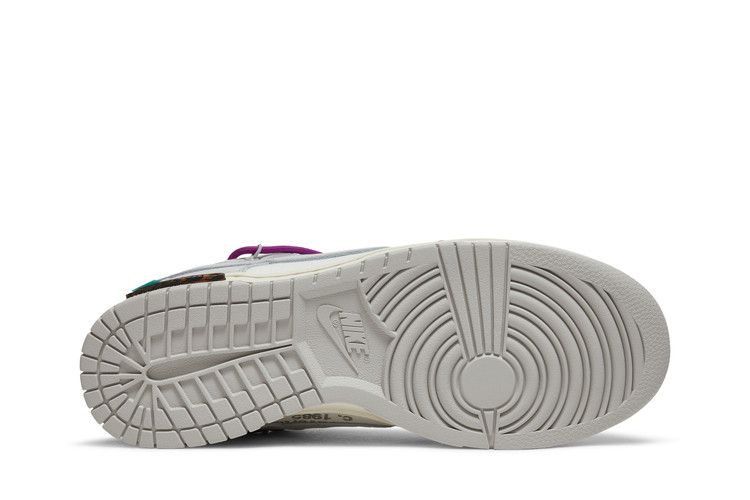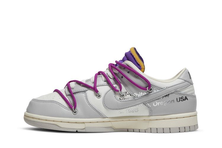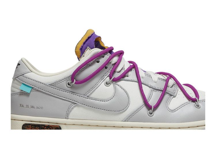 The Nike Dunk Low Off-White Lot 28 features a sail, neutral grey, and hyper violet color palette. Its upper combines lightweight leather and breathable textile for durability. The midsole includes...