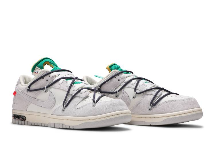 The Nike Dunk Low Off-White Lot 20 is part of the 'Dear Summer' collection, featuring a white leather upper with grey suede overlays and signature Off-White design elements like a...