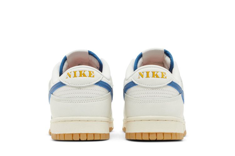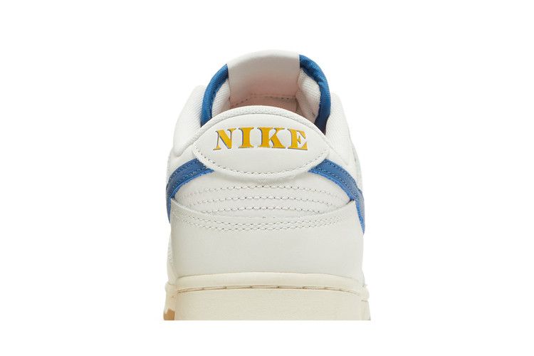 The Nike Dunk Low SE Sail Dark Marina Blue features a Dutch blue, white, and dark marina blue color pattern. The sail white leather upper includes blue mesh tongues and...