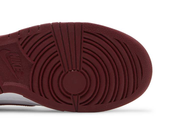The Nike Dunk Low Team Red features a white leather upper with brick-red overlays, paying homage to the original 1985 colorway. The shoe includes a nylon tongue with a Nike tag, embroidered heel tab, and rubber cupsole with a grippy outsole. This classic design was inspired by the iconic 'Be True to Your School' series and is a timeless addition to any sneaker collection.