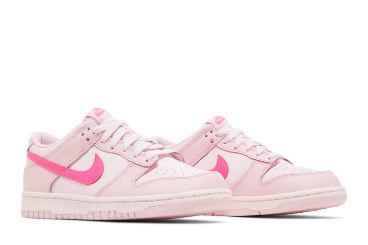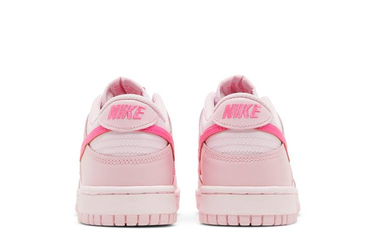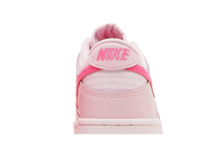 The Nike Dunk Low Triple Pink (PS) is a children's sneaker featuring a tonal pink colorway. The leather upper includes a padded low-cut collar and breathable perforations on the toe...