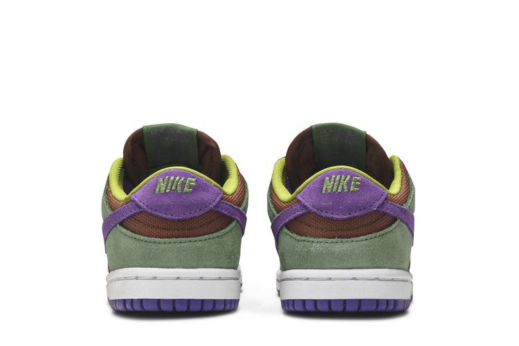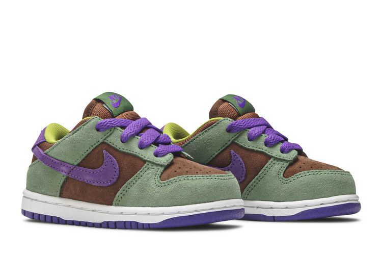 The Nike Dunk Low Veneer 2020 TD features a premium leather and suede upper with a classic white midsole and gum rubber outsole. It includes a padded tongue and collar for comfort, along with Nike branding on the tongue and heel tab. The colorway combines Veneer tones with Autumn Green and Deep Purple accents for a fresh take on the Dunk silhouette. Released on November 10, 2020, the Nike Dunk Low Veneer 2020 TD is available now at Side Kicks.