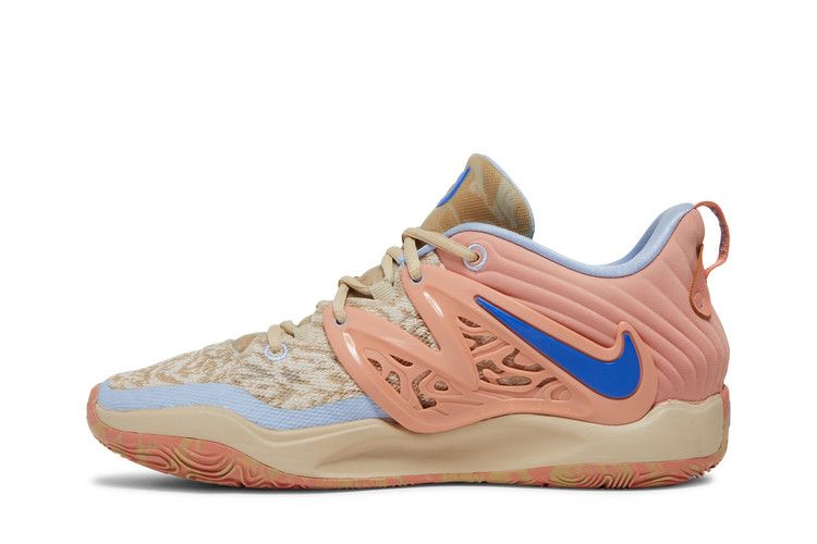 The Nike KD 15 The Ground Up features a rubber outsole with an omnidirectional tread pattern and midfoot perforations. A rattan-colored mesh upper sits atop an Air Max heel unit,...