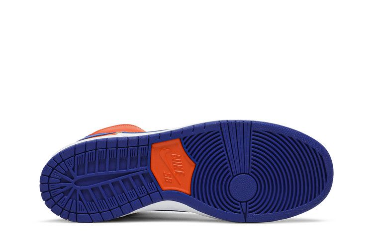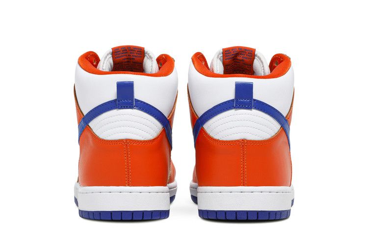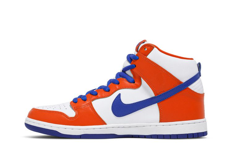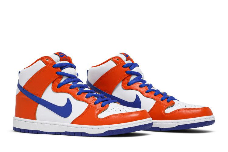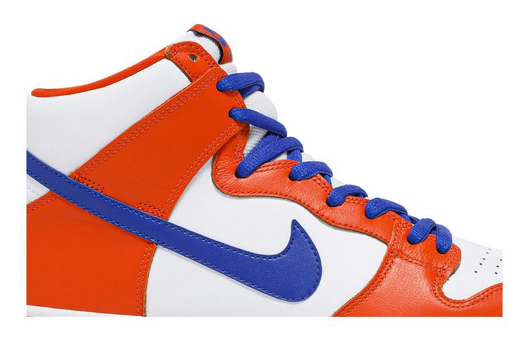 The Nike SB Dunk High "Danny Supa" features a Knicks-inspired colorway with a white and orange leather upper and blue accents. It includes Zoom Air cushioning for comfort and support....