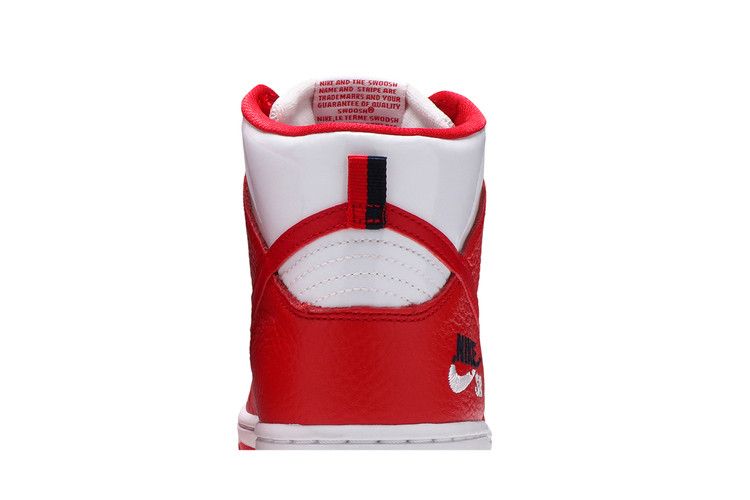 The Nike SB Dunk High Future Court Obsidian features a white leather upper with perforated toe ventilation and a padded collar for ankle support. Black tumbled leather overlays and a...