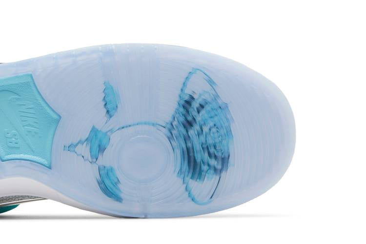 The April Skateboards x Nike Dunk Low SB ‘Turbo Green’ features a white mesh upper with teal suede overlays and a chrome Swoosh. White leather on the toe box and back tab, with April and Nike SB branding throughout. Translucent rubber outsole with a floral graphic. Mismatched Nike SB and April logos on tongue tags. Lateral heel stamped with ‘April’. A bold design inspired by skate culture, blending functionality with street-ready aesthetics. Available on November 27, 2023.
