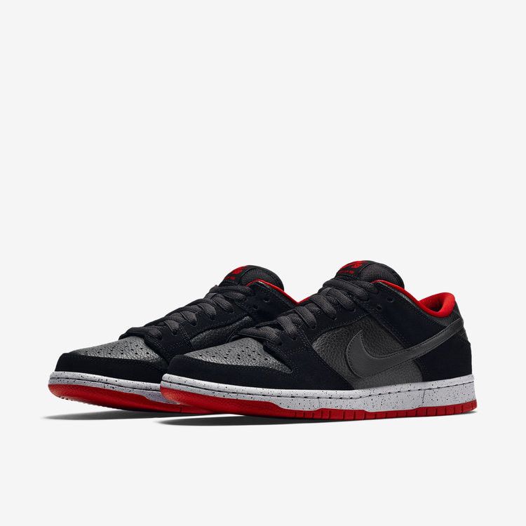 The Supreme x Nike SB Dunk Low features a Fire Red and Cement Grey colorway with black accents. It includes a "World Famous" branded hang tag keychain. Released in Supreme...