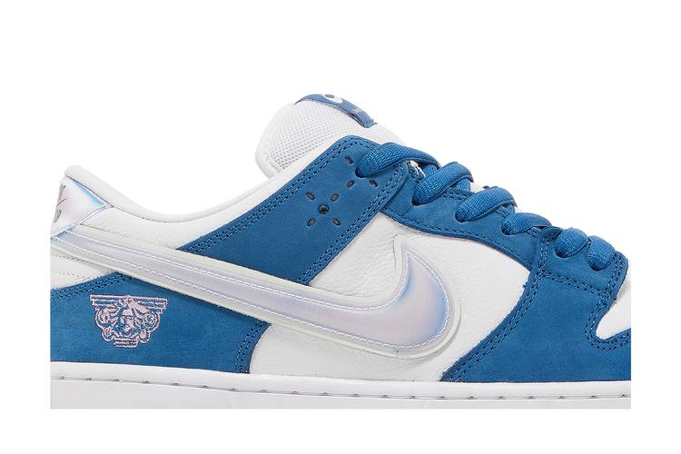 The Born x Raised x Nike Dunk Low SB ‘One Block at a Time’ features a white leather upper with ornate perforations and Dodger blue overlays. The shoe includes pink...