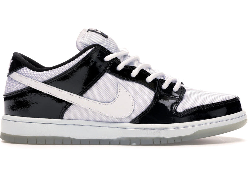 The Nike SB Dunk Low Concord features a black, white, Ice Blue, and Dark Concord color scheme. The upper combines a white mesh base with black patent leather overlays and...