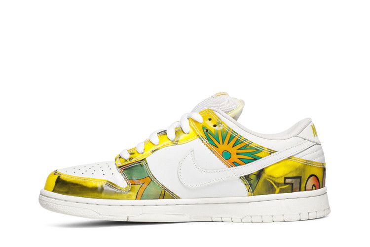The Nike SB Dunk Low De La Soul 2015 draws inspiration from the "3 Feet High and Rising" album cover, reimagining the 2005 colorway in a low-top silhouette. The upper...