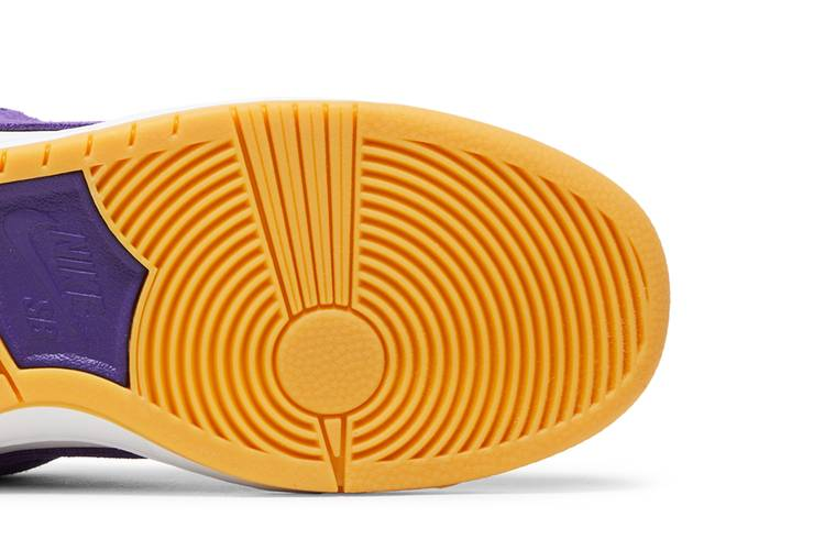 The Nike SB Dunk Low Pro ISO Orange Label Court Purple features a durable leather upper with suede overlays for added support and style. The mesh tongue and lining provide breathability, while the padded collar offers comfort and ankle support. The rubber outsole with a classic herringbone pattern ensures excellent traction on various surfaces. Inspired by the Los Angeles Lakers color scheme, this shoe is a must-have for sneaker enthusiasts looking for a unique and eye-catching design.