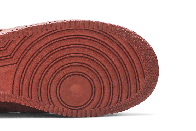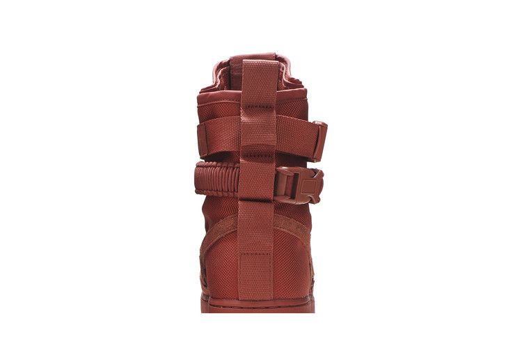 The Nike SF Air Force 1 High Dusty Peach features a high-top design with a Dusty Peach colorway. The upper combines ballistic nylon and tumbled leather for durability, while the hidden tongue pocket and adjustable strap add utility. A foam midsole provides cushioning, and the rubber outsole ensures traction with a circular pattern. Released on January 12, 2018, the Nike SF Air Force 1 High Dusty Peach is available now at Side Kicks.