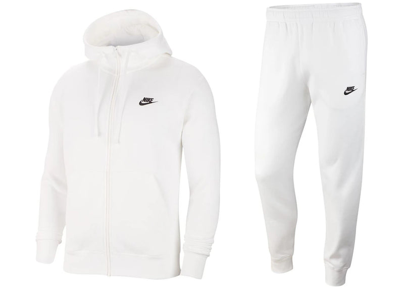 The Nike Sportswear Club Fleece Full-Zip Hoodie & Joggers Set White/White/Black is now available at Side Kicks!