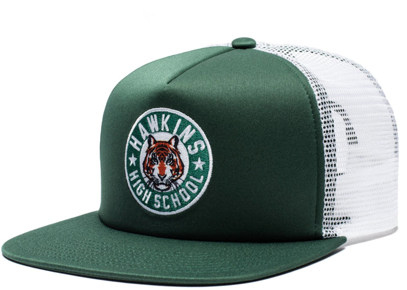 The Nike x Stranger Things Hawkins High Trucker Hat Green is now available at Side Kicks!