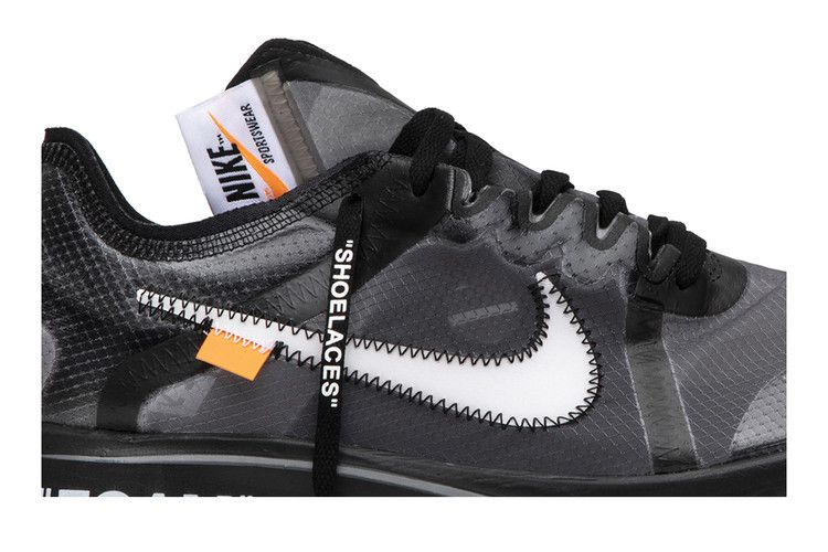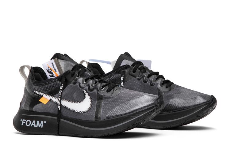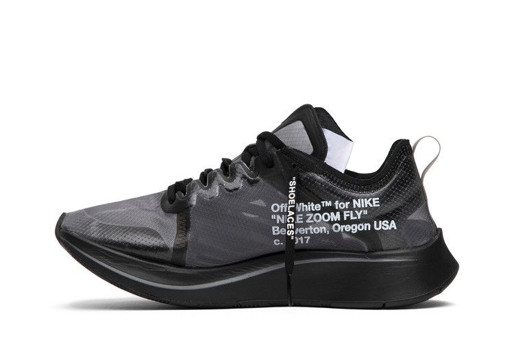 The Nike Zoom Fly Off-White Black Silver features a translucent upper with black accents, a white Nike Swoosh, and a black midsole and sole. Released on October 2018, the Nike...