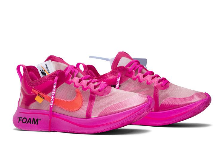 The Nike Zoom Fly Off-White Pink features a translucent upper with pink accents, a pink Swoosh, and a matching midsole and outsole. Released on October 2018, the Nike Zoom Fly...