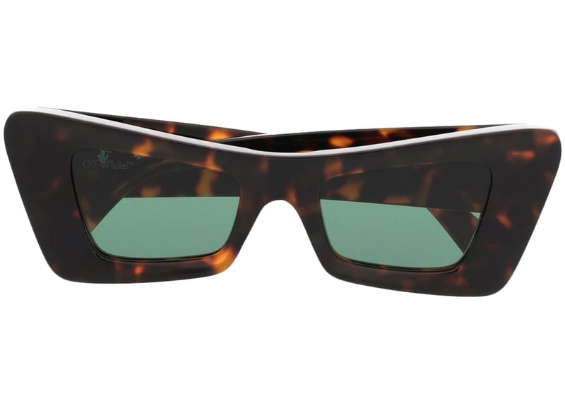 The OFF-WHITE Accra Cat-Eye Sunglasses Tortoiseshell/Green is now available at Side Kicks!