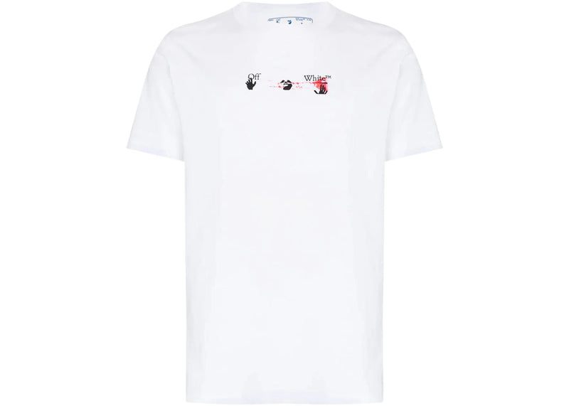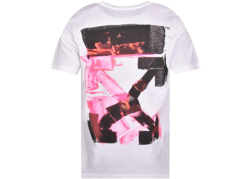 The OFF-WHITE Acrylic Arrow Logo Print T-Shirt White/Black/Fuchshia is now available at Side Kicks!