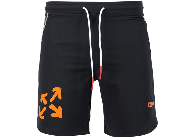 The OFF-WHITE Active Knit Shorts Black/Orange is now available at Side Kicks!