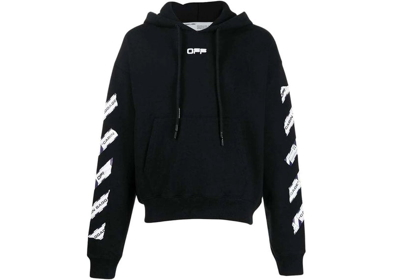 The OFF-WHITE Airport Tape Slim Hoodie Black/Multicolor is now available at Side Kicks!