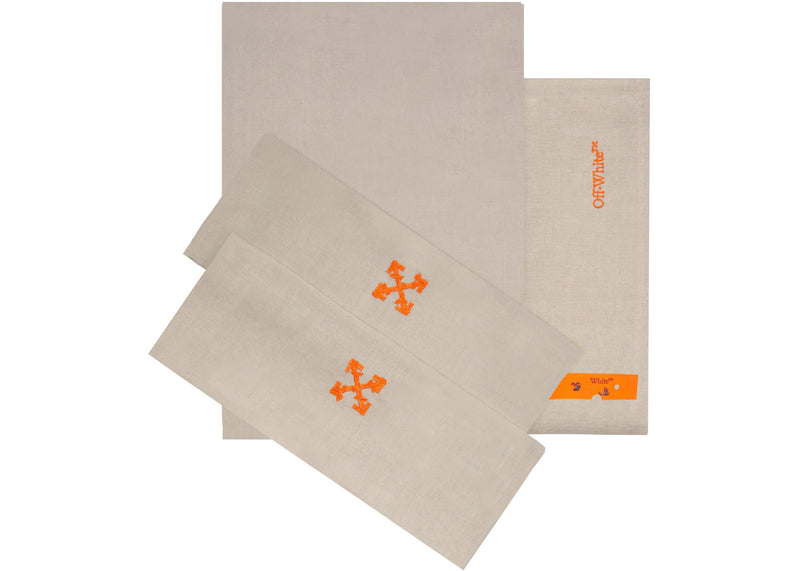 The OFF-WHITE Arrow Double Bed Set Linen Beige/Orange is now available at Side Kicks!