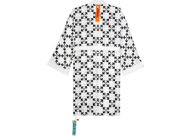 The OFF-WHITE Arrow Pattern Silk Robe White/Black is now available at Side Kicks!