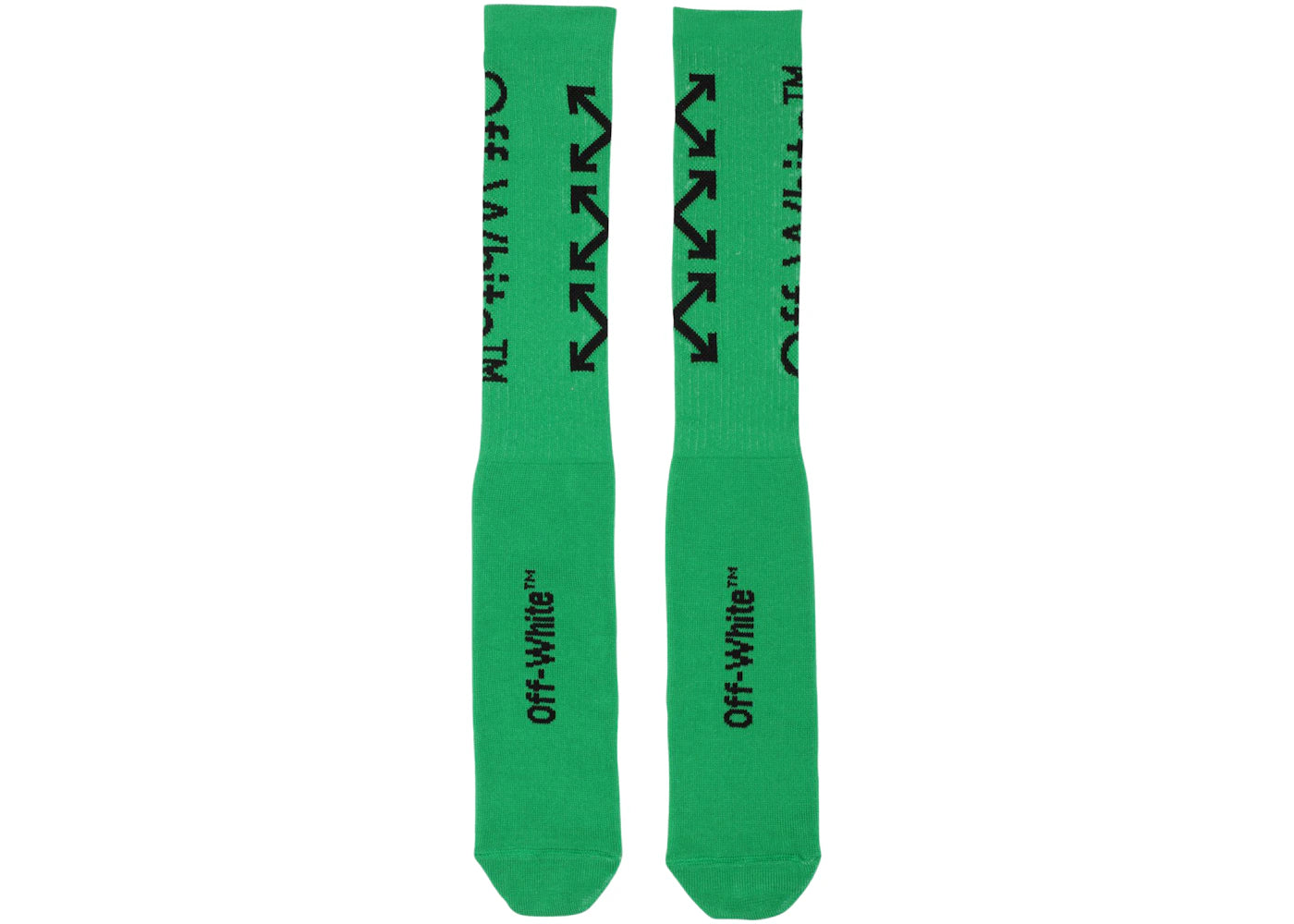 The OFF-WHITE Arrow Socks Green/Black is now available at Side Kicks!