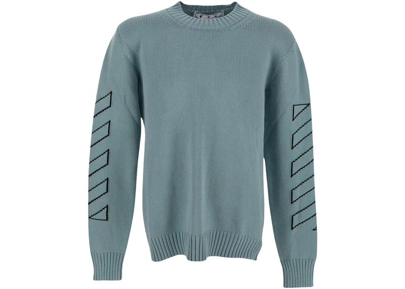 The OFF-WHITE Arrows Diag Outline Intarsia Knit Sweater Light Green is now available at Side Kicks!