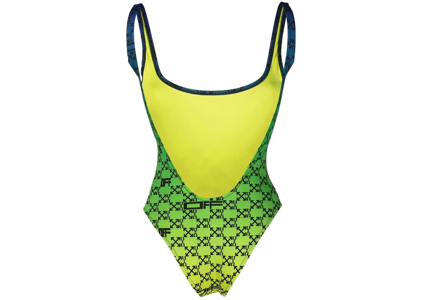 The OFF-WHITE Arrows Gradient One Piece Swimsuit Green/Yellow is now available at Side Kicks!
