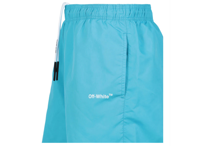 The OFF-WHITE Arrows Swim Shorts Blue is now available at Side Kicks!