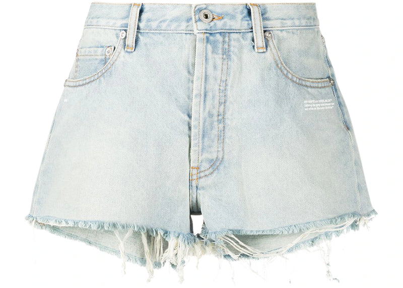 The OFF-WHITE Bleached Denim Shorts Bleach is now available at Side Kicks!
