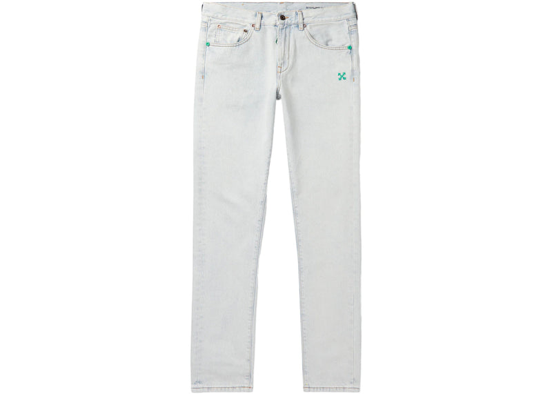The OFF-WHITE Bleached Slim Fit Denim Jeans Bleach/Mint is now available at Side Kicks!