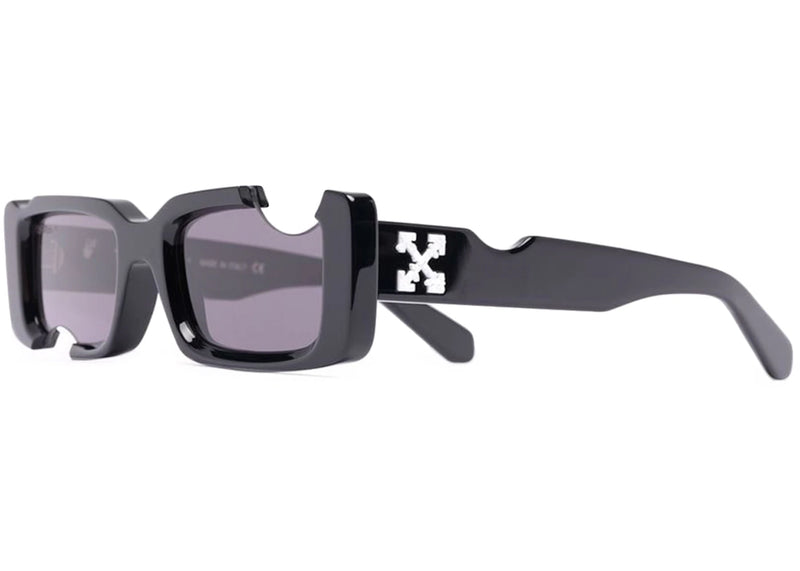 The OFF-WHITE Cady Cut-Out Rectangular Frame Sunglasses Black/White/Grey (SS22) (OERI006C99PLA0011007) is now available at Side Kicks!