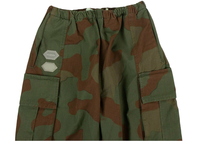 The OFF-WHITE Camo Cargo Pants Green is now available at Side Kicks!