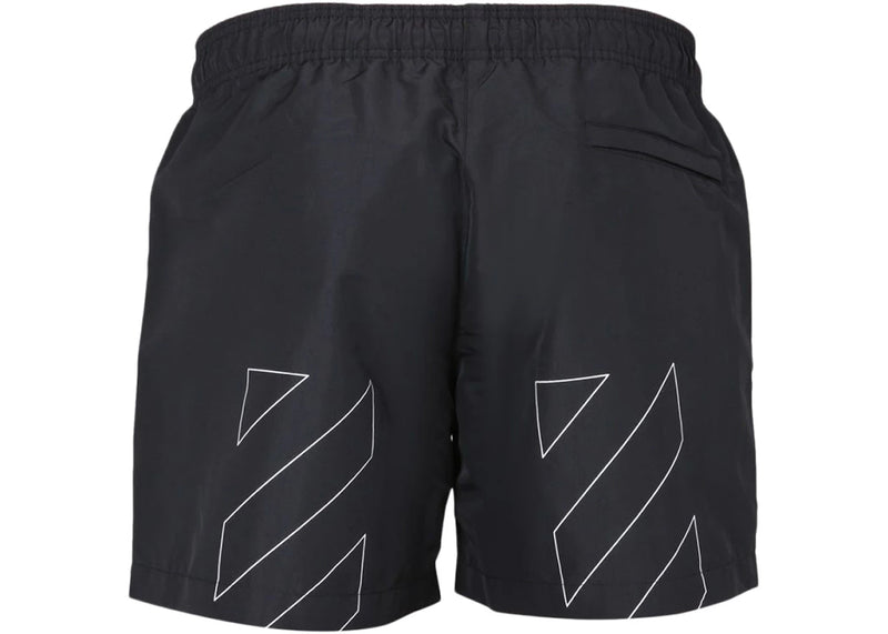 The OFF-WHITE Diag Outline Swim Shorts Black/White is now available at Side Kicks!