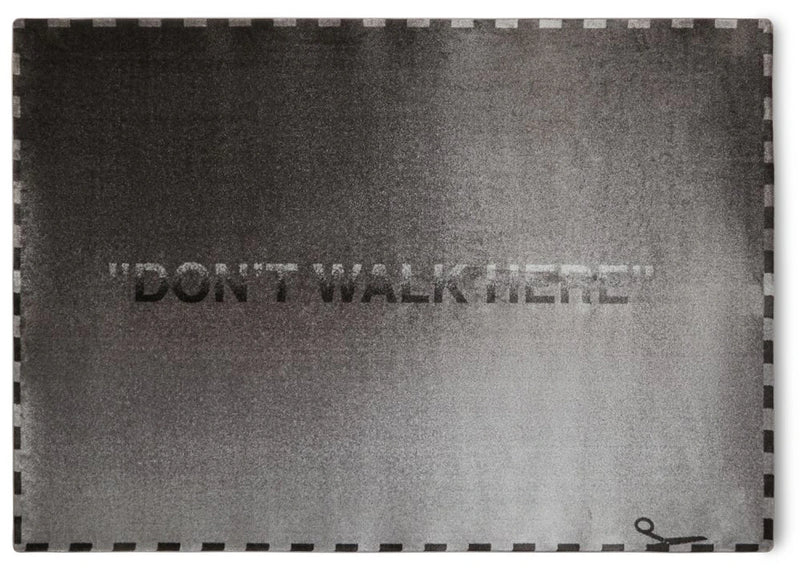 The OFF-WHITE "Don't Walk Here" Sissor Cut Boarder Rug Grey is now available at Side Kicks!