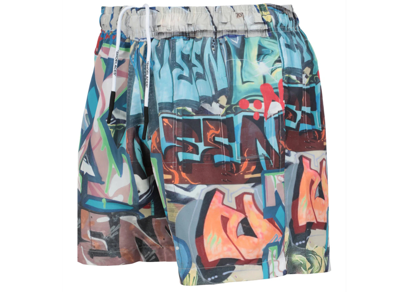 The OFF-WHITE Neen Graffiti Print Swim Shorts Multi is now available at Side Kicks!