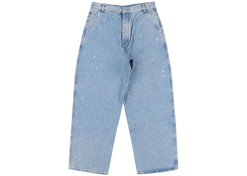 The OFF-WHITE Paint Wide Leg Tapered Jeans Medium Blue is now available at Side Kicks!