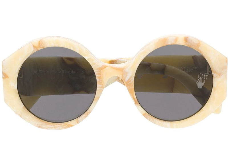 OFF-WHITE Sara Round Frame Sunglasses Yellow Marble/White (OWRI022F20PLA0011800)