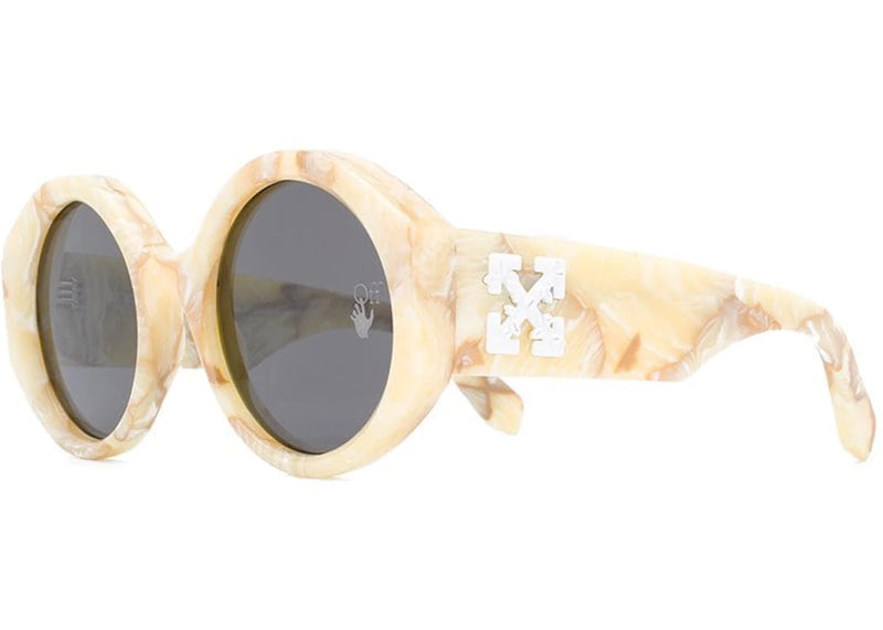 The OFF-WHITE Sara Round Frame Sunglasses Yellow Marble/White (OWRI022F20PLA0011800) is now available at Side Kicks!