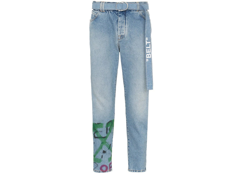 OFF-WHITE Slim Low Crotch Graffiti Denim Jeans Bleach/Multicolor