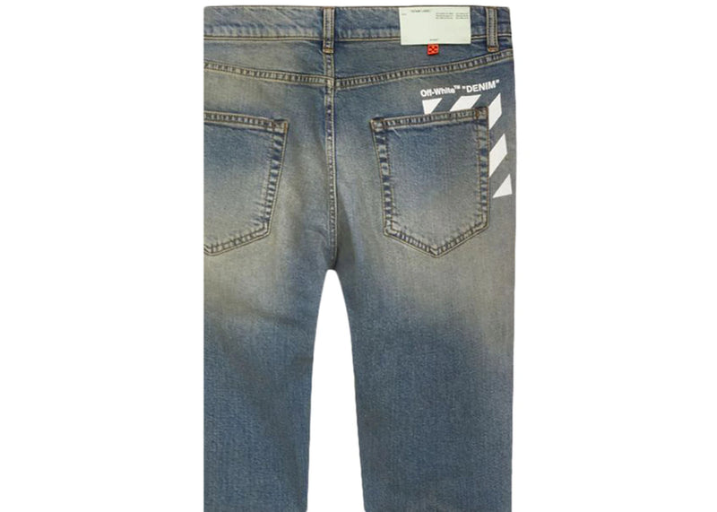 OFF-WHITE Split Slim Fit Denim Jeans Vintage Wash/White