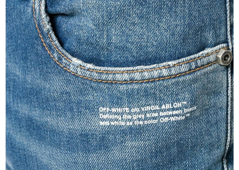 The OFF-WHITE Stonewash Skinny Fit Denim Jeans Medium Blue/White is now available at Side Kicks!