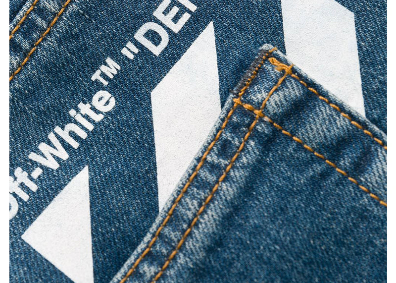 OFF-WHITE Stonewash Skinny Fit Denim Jeans Medium Blue/White