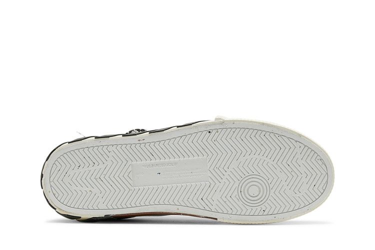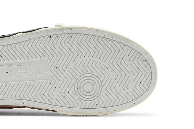 The OFF WHITE Vulc Low Black Light Blue Arrow features a black leather upper with light blue accents on the arrow logo and heel tab. It has a vulcanized sole...