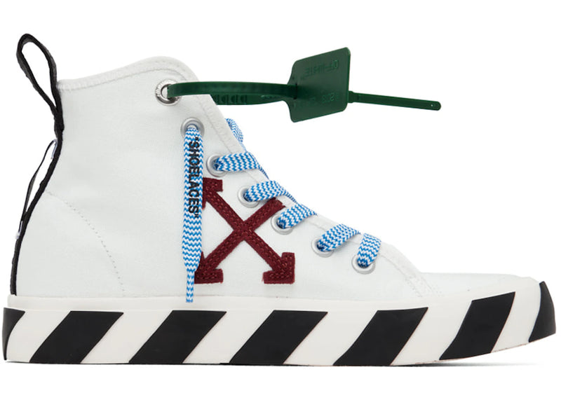 The OFF-WHITE Vulcanized Mid Top White Burgundy Arrow is now available at Side Kicks!