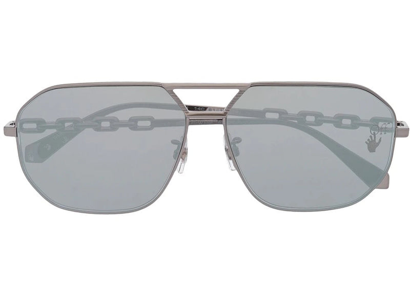 The OFF-WHITE Wright Aviator Sunglasses Dark Grey/Grey (OMRI007F20MET0010700) is now available at Side Kicks!